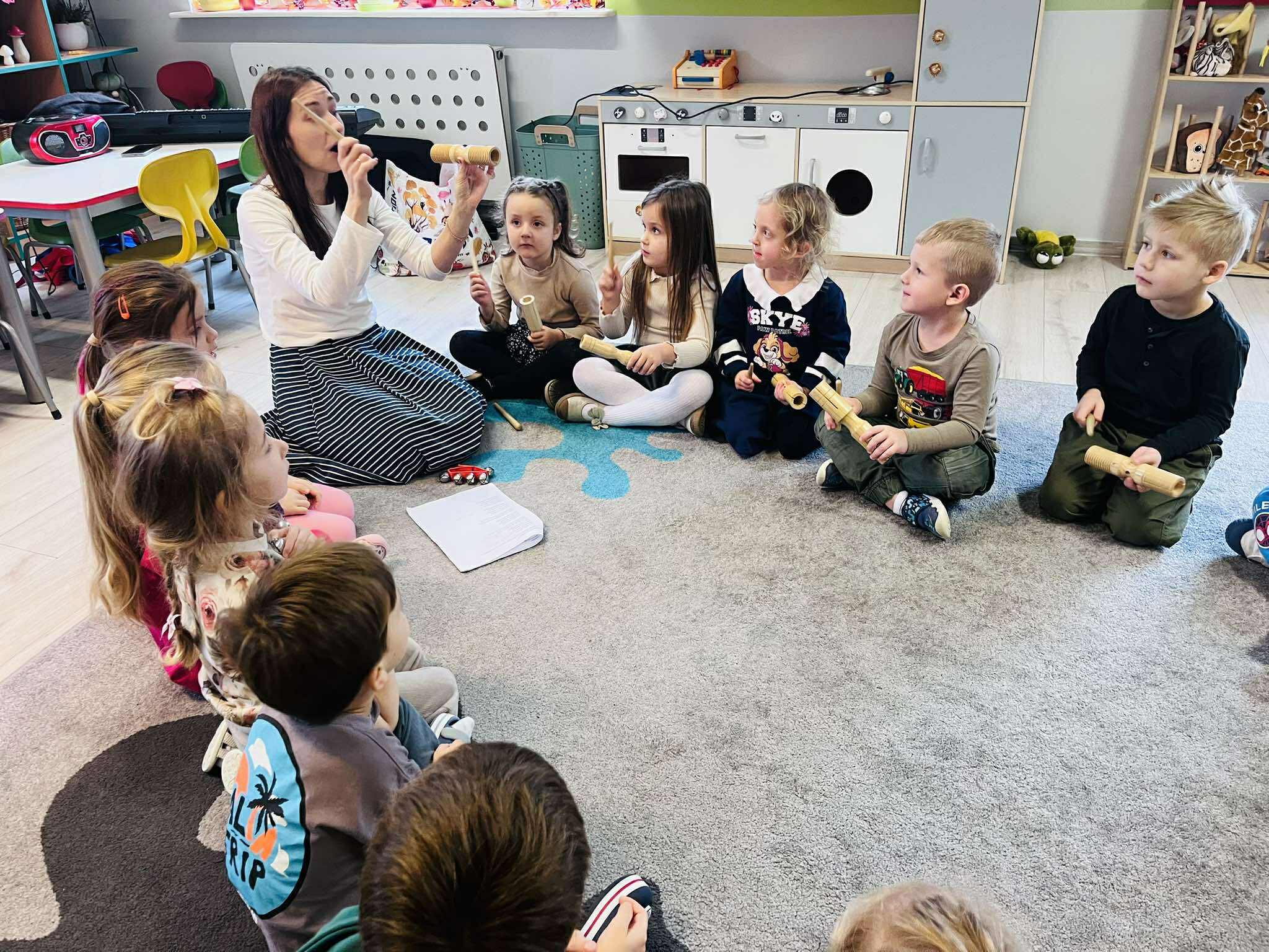 Radosne spotkania z muzyką i ruchem, które rozwijają poczucie rytmu, koordynację i wrażliwość muzyczną.